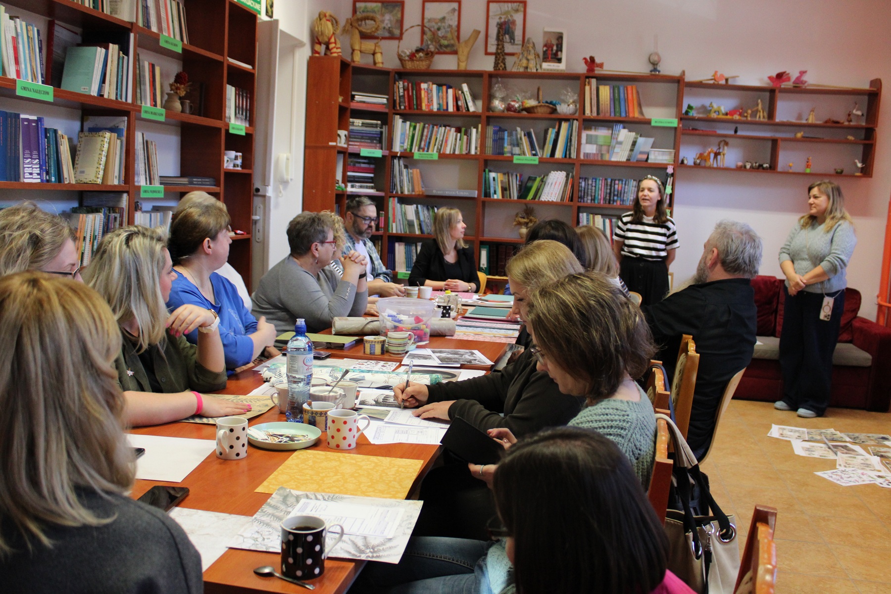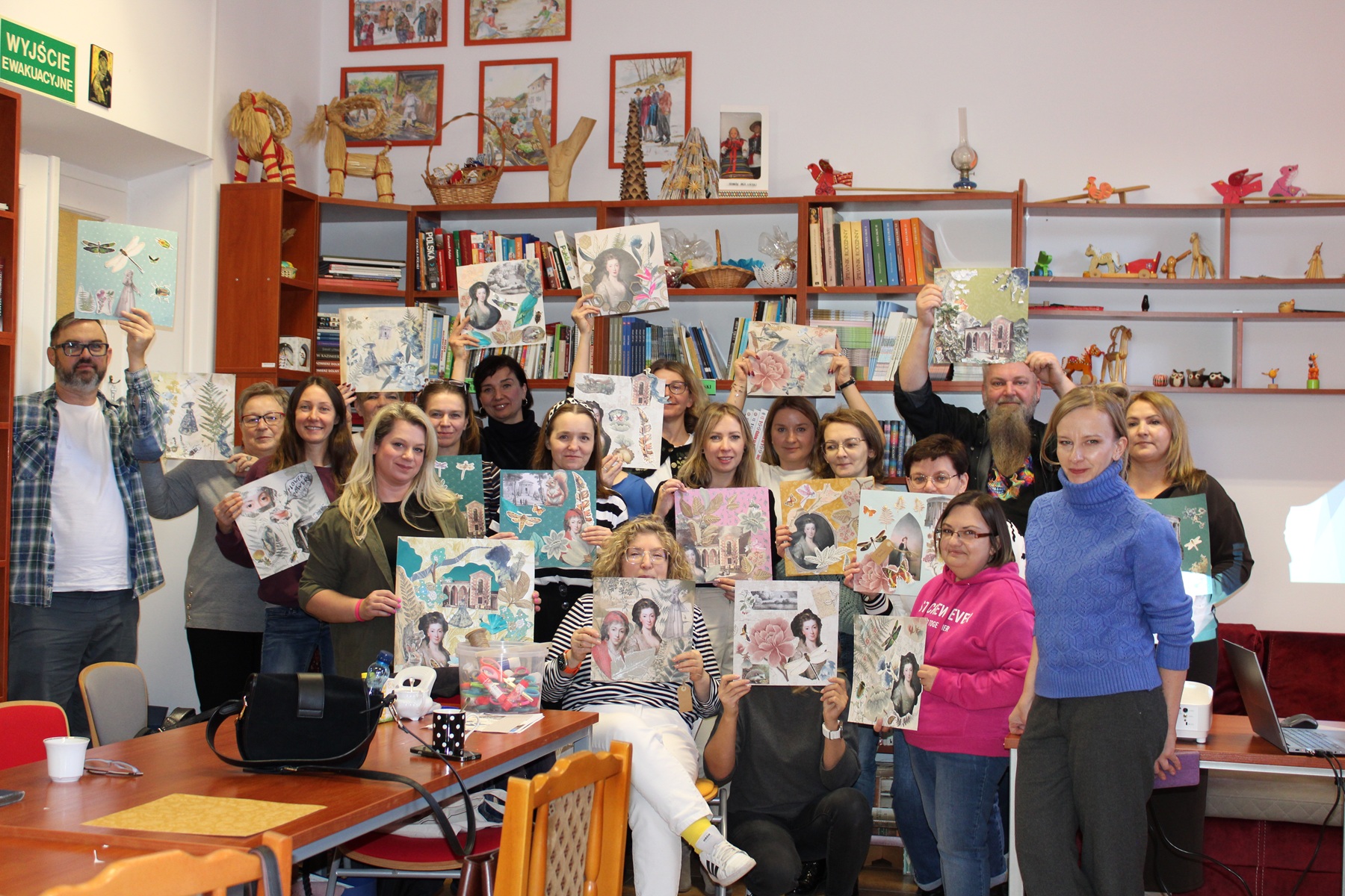 7 listopada 2025 r. o godz. 9:30 Powiatowa Biblioteka Publiczna w Puławach zaprosiła bibliotekarzy z terenu powiatu puławskiego na szkolenie „Kolaż w pracy bibliotekarza”. O tym jak wykorzystać technikę kolażu w pracy bibliotekarza opowiedziała pani Dorota Opolska-Maksym. Szkolenie miało charakter warsztatów edukacyjno – plastycznych. Podczas zajęć powstały piękne kolaże inspirowane ogrodem Księżnej Izabeli Czartoryskiej, a samo szkolenie doskonale wpisało się w obchody Roku Księżnej Izabeli Czartoryskiej w Puławach.