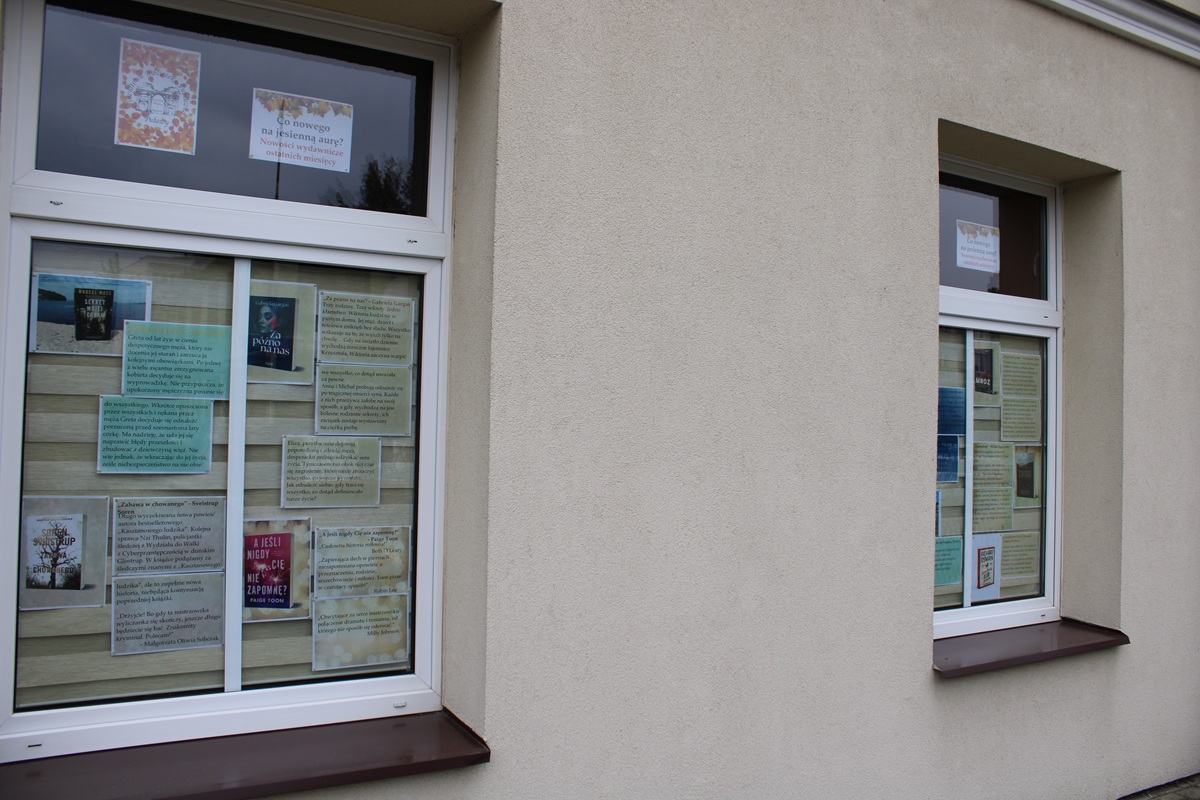 Powiatowa Biblioteka Publiczna śpieszy więc z jesiennymi polecajkami — na naszych oknach pojawiły się nowości wydawnicze z ostatnich miesięcy. Wśród nich każdy znajdzie coś dla siebie.
