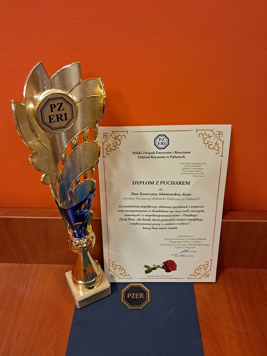 Serdecznie dziękujemy Oddziałowi Rejonowemu w Puławach Polskiego Związku Emerytów i Rencistów za przyznane wyróżnienie dla Powiatowej Biblioteki Publicznej w Puławach.