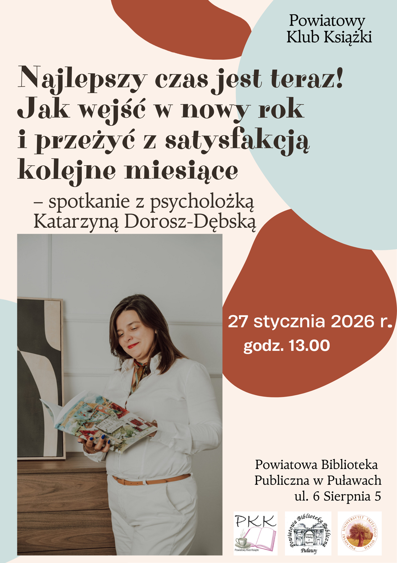 Powiatowa Biblioteka Publiczna serdecznie zaprasza na pierwsze w Nowym Roku spotkanie Powiatowego Klubu Książki, które odbędzie się 27 stycznia 2026 r. (wtorek) o godzinie 13:00. Po raz kolejny będziemy gościć Katarzynę Dorosz-Dębską – psycholog i psychoterapeutkę dorosłych, dzieci oraz młodzieży, a także autorkę książki „Krótka bajka o życzliwości”.