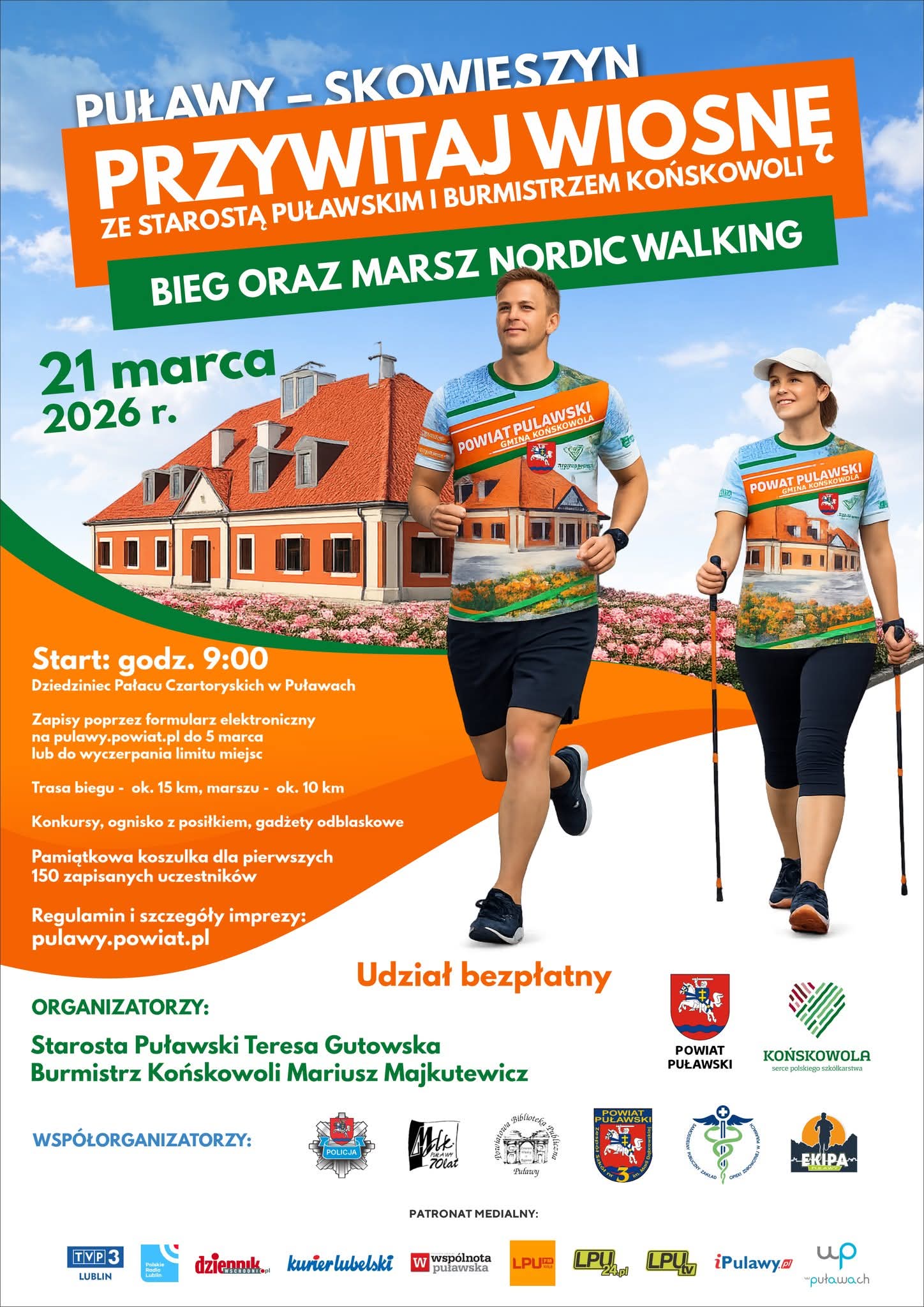 Bieg i marsz nordic walking Puławy – Skowieszyn „Przywitaj wiosnę ze Starostą Puławskim i Burmistrzem Końskowoli” – tym razem także z czytelniczym przytupem! 📚